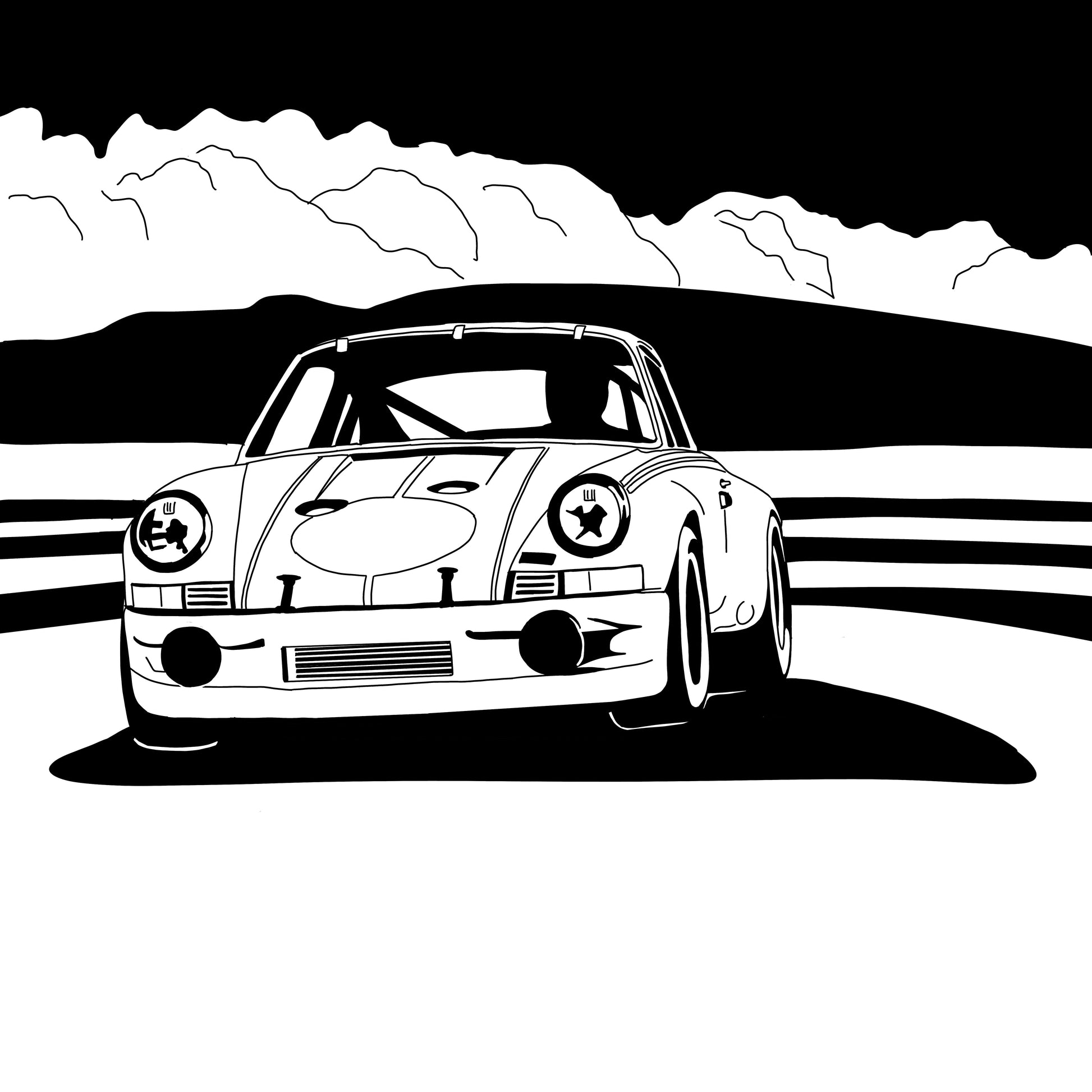 11x17 - B/W print of a 1973 RSR Porsche on track