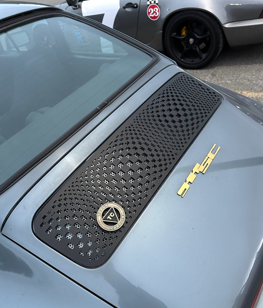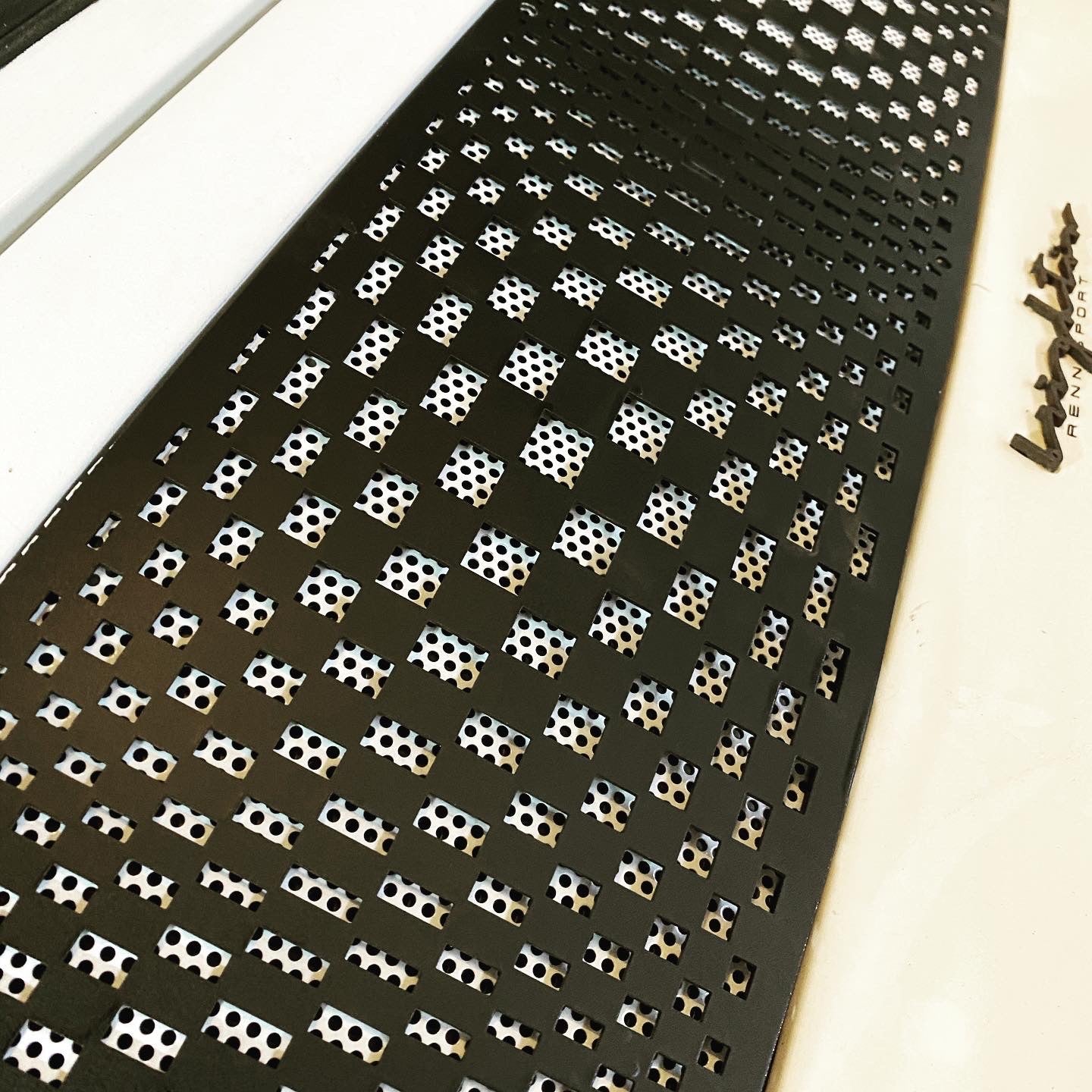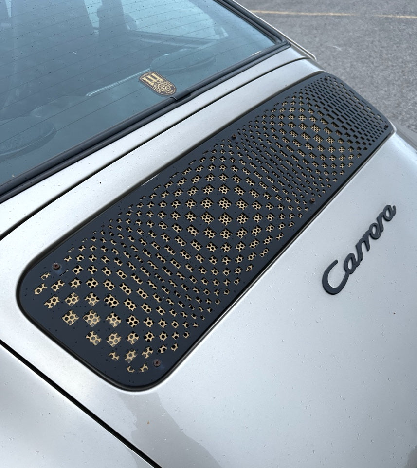 Custom Pasha pattern, 1.6mm laser cut raw aluminum pattern deck grill, formed to fit the contour of your 911 deck. Comes with stainless mounting bolts and spacers. Please specify the grill opening you have, 1973 and earlier or 1974 and later. If you want it powder-coated place your order and we can coordinate colors via email.