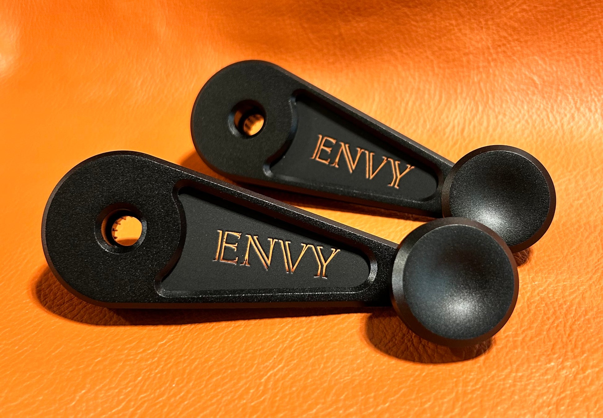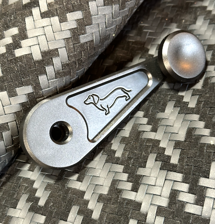 Fits 1964-1989 manual window crank Porsche 911’s. CNC aluminum construction shaped to fix the problem of stock and other aftermarket cranks that rub the door panel material. Two finish options: Satin Hard anodized black or Matte Silver Powdercoat.