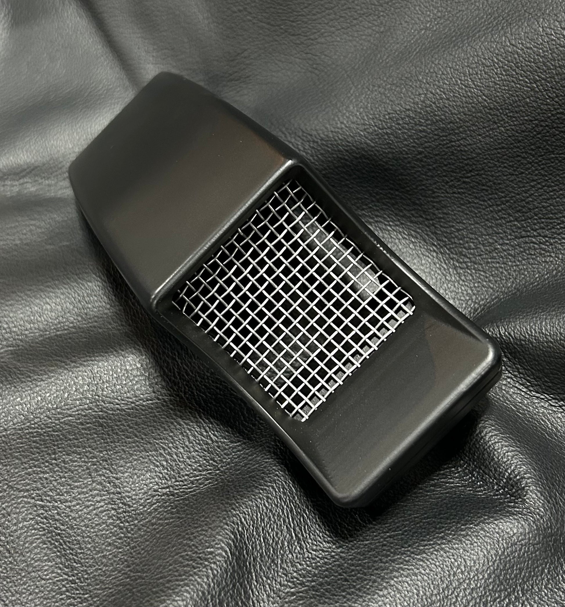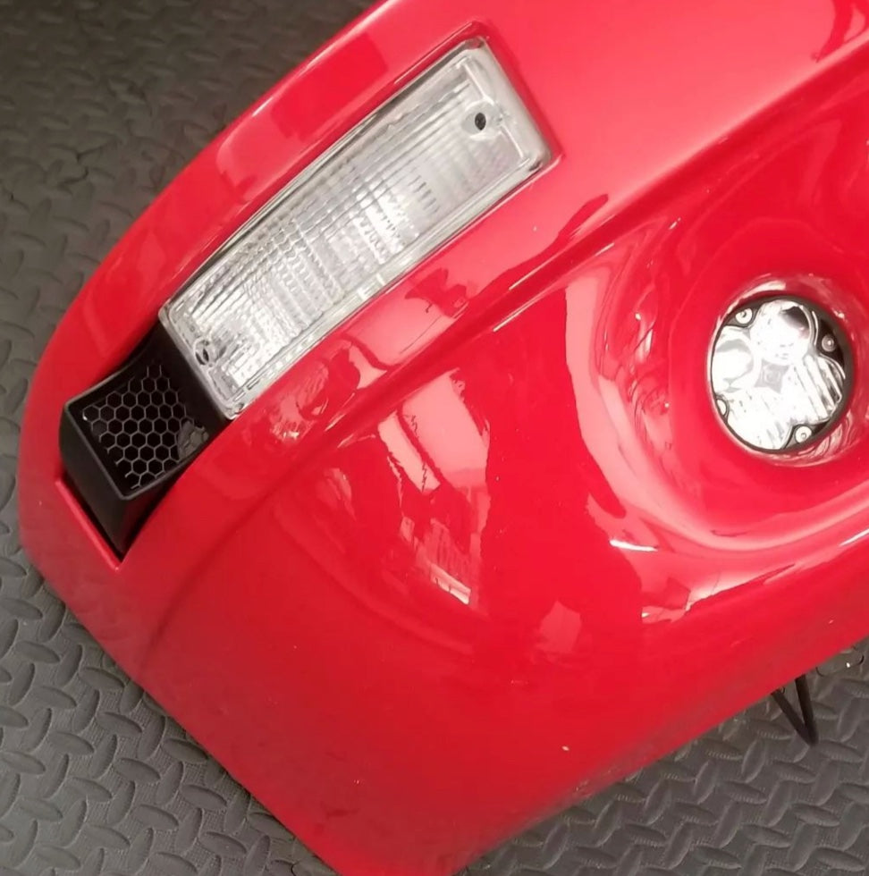 Your Porsche 911 SC / impact bumper cars deserve to have an oil cooler vent that has the style and design that blends in seamlessly with our bumpers. Plastic vent in a matte black, with various screen options to match your style. Easy install, replacing the marker light in the front bumper. Stylish and functional helping direct fresh air to the front oil cooler.
