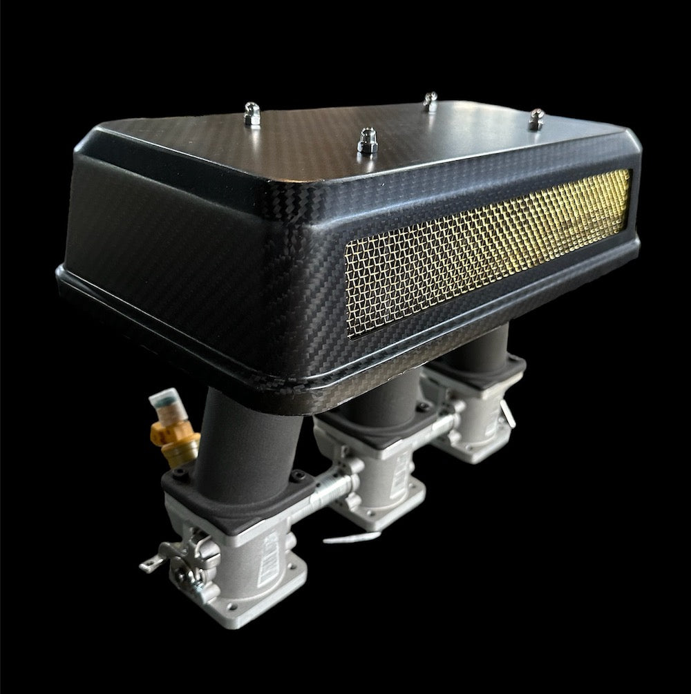 Constructed from premium twill carbon fiber and finished with a satin coating, these covers provide not only exceptional durability and light-weight strength but also a distinctive luxurious style. Echoing the iconic design of the Porsche 917's air filters, our covers feature aggressive openings equipped with a multitude of custom mesh option. This design choice pays tribute to Porsche's rich racing heritage and optimizes airflow to the engine.