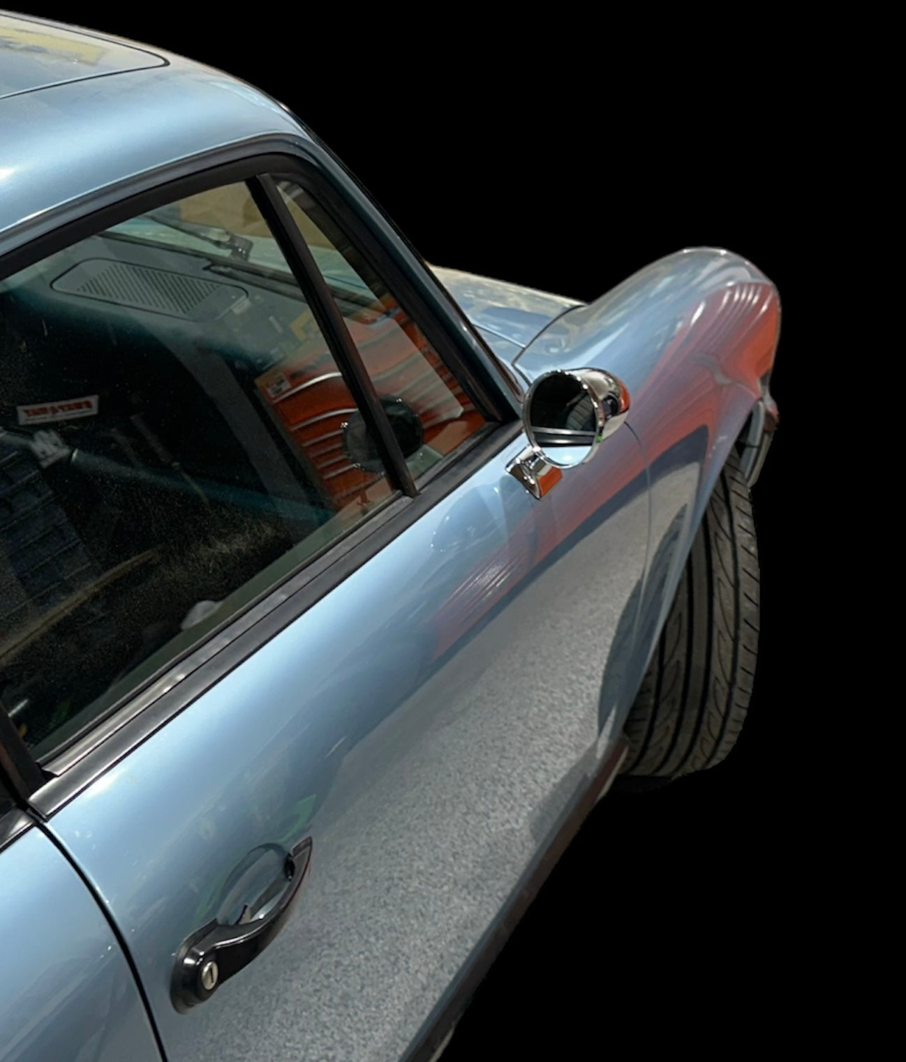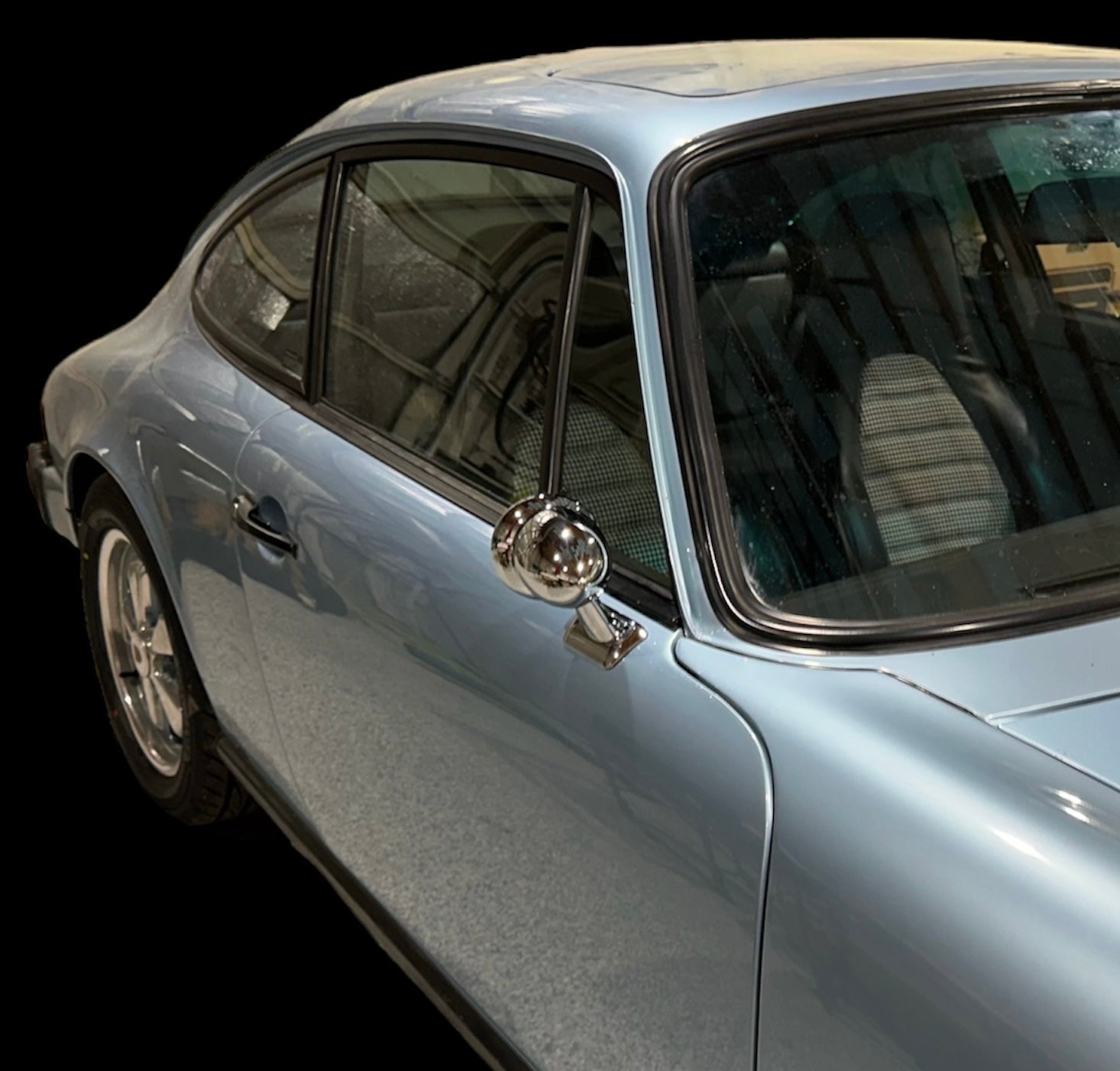 Tired of the stock Porsche 911 SC Flag Mirrors but don't want to have to repaint your doors to update the look of your mirrors? Us too, we have spent the past 3 years designing, testing and refining these all Aluminum bullet mirrors that are an easy bolt on replacement for the large stock Flag Mirrors on all 1975-1988 Porsche 911's.