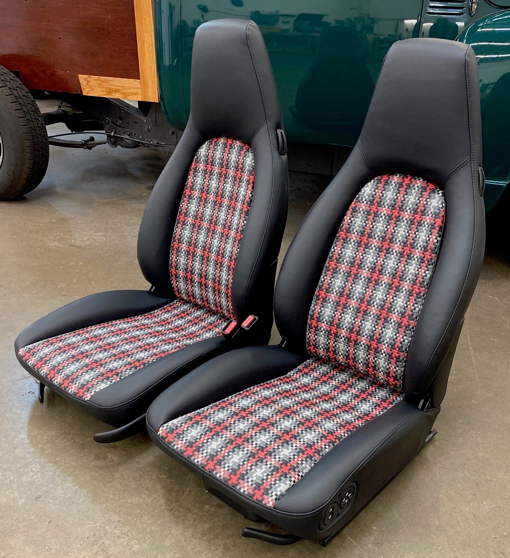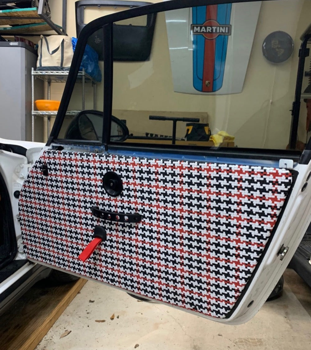 We will work with you to design the right Patterns / Plaid / Tartan / Houndstooth design that fits your build, we can create custom weaves in synthetic leather. You contact us, we design a pattern and color palette that will work with your build.